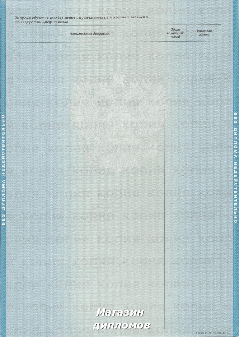 Диплом ВУЗа Российской Федерации (Гознак, МПФ, Москва 2014 год.), выдавался с 2014 года.
